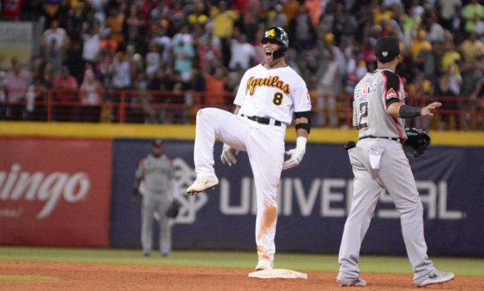 Los rojos anotaron en el primer episodio con una carrera de luego de dos outs gracias a imparables consecutivos de Jimmy Paredes, Jesse Castillo y César Puello. Los locales respondieron con tres vueltas en la tercera entrada pero los rojos descontaron con una en el quinto, pero luego vino un rally de cinco carreras de los aguiluchos en la parte baja colocó el juego 8-2. Los visitantes marcaron una en el sexto por wild pitch de Darío Álvarez, permitiendo que Gustavo Núñez llegara a la registradora desde tercera. La cuarta de los rojos se produjo en el séptimo cuando con corredores en tercera y primera César Puello conectó rodado para doble matanza, mientras que la quinta se produjo en el noveno por sencillo de Castillo al central, empujando a la goma a Eric Filia desde la antesala.