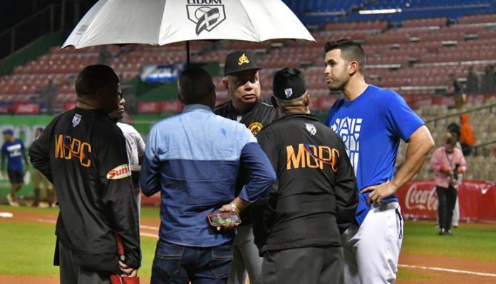 El partido estaba en la parte baja del episodio 13 cuando fue detenido por lluvia a las 1:45 de la mañana y no fue hasta las 3:30 de la mañana que se decidió posponer el encuentro para hoy sábado a las 7:30 de la noche en el Estadio Quisqueya.