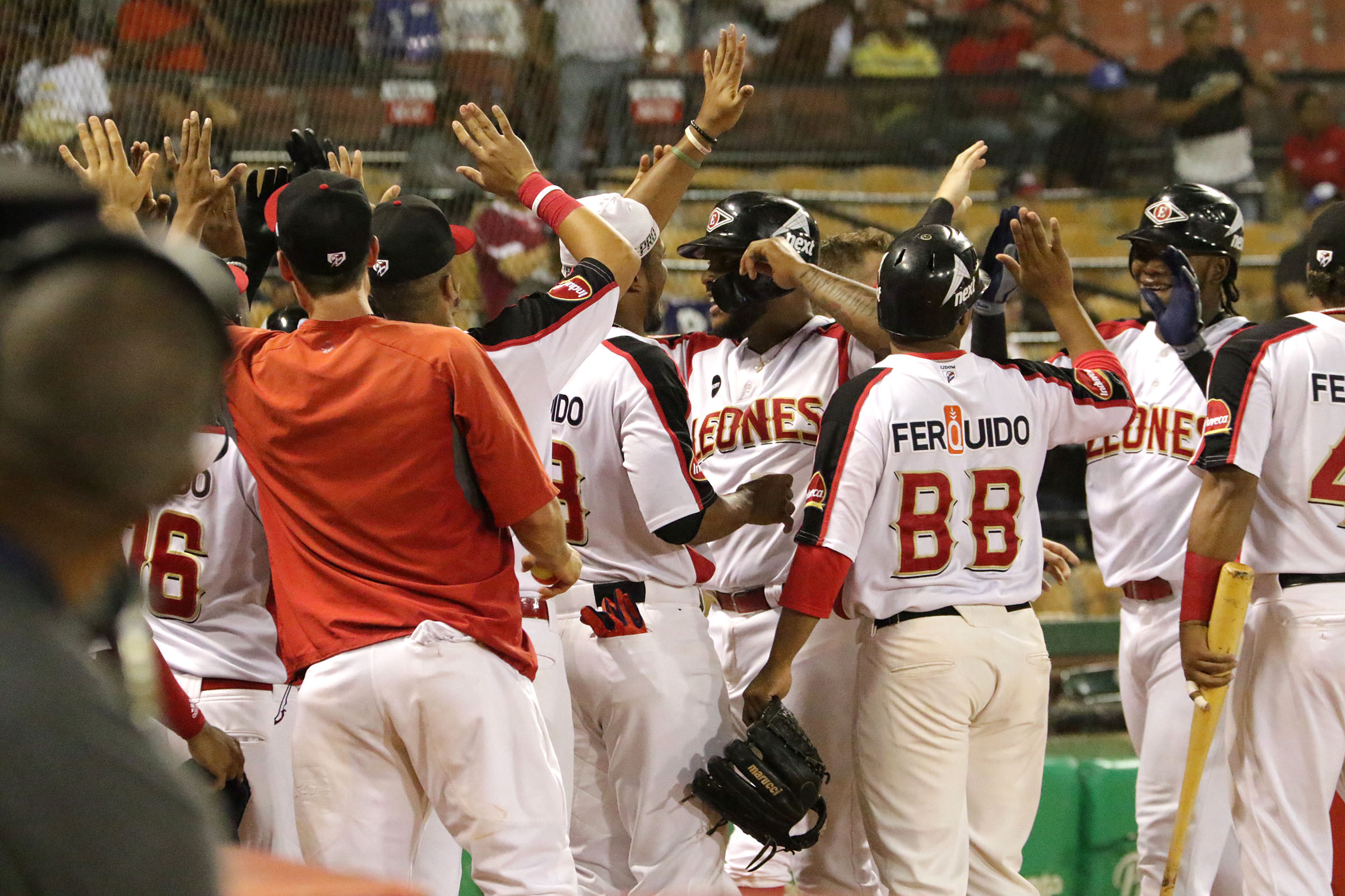 Los Gigantes del Cibao atacaron primero con dos carreras en la parte alta del segundo episodio pero la respuesta roja nos e hizo esperar y contraatacaron en la parte baja de ese episodio cuando Cordero y Espinal se embasaron por indiscutible y boleto, respectivamente, y un doblete de Asuaje al left field, combinado con un error en tiro de Avelino permitió que los tres entraran en carrera. En el tercer capítulo, Iván Castillo fue transferido y anotó por doble de Taylor Ward, quien pasó a la antesala por imparable de Cordero al prado derecho. Con corredores en las esquinas, un doble de Espinal al bosque derecho colocó el juego 6-2.