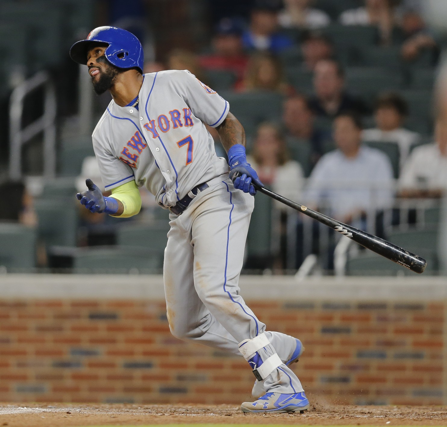 José Reyes teniendo su mejor noche de la temporada, al remolcar cinco carreras en el triunfo de los Mets sobre los Bravos el 03 de Mayo de 2017. (AP)