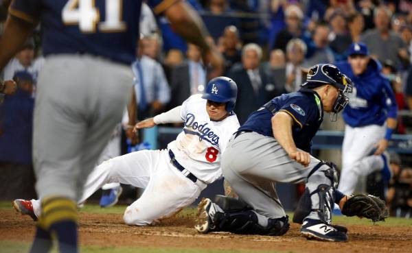 El dominicano Domingo Santana, disparó un doble remolcador que empató el encuentro a una carrera por bando en la parte alta del inning número 5. Luego los relevistas de ambos conjuntos mantuvieron el encuentro empatado hasta llegar a entradas extras con una gran labor entre las que se destacan la de Joakim Soria y Josh Hader de los Cerveceros que lanzaron una entrada en blanco cada uno y por los Dodgers Kenley Jansen con dos entradas en blanco de dos ponches.