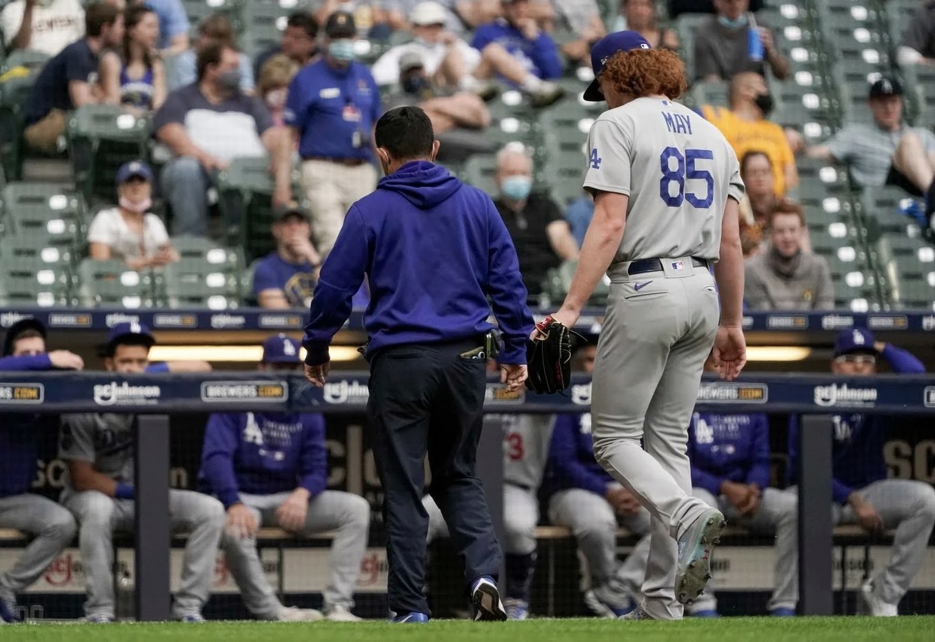Tras el partido el dirigente Dave Roberts dijo que May notificó al staff técnico del equipo que sentía como una sensación de corriente en el codo.