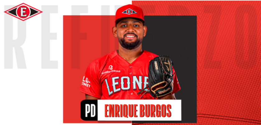 Redacción. Los Leones del Escogido quieren seguir sólidos en la primera posición para ello han decidido reforzar su cuerpo de lanzadores al anunciar a un nuevo refuerzo que se trata del panameño Enrique Burgos, ya está integrado con el equipo y se espera que haga su debut en cualquier momento de la próxima semana.