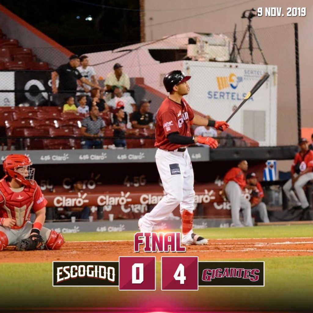 San Francisco.- Los Gigantes del Cibao blanquearon 4-0 a los Leones del Escogido y de paso cortaron la racha de tres victorias consecutivas que llevaban los Leones después de la miniserie de tres encuentros ante las Águilas Cibaeñas. El cuerpo de pitcheo fue el gran soporte para conseguir 12va victoria de la temporada, encabezados por Brody Koerner quien lanzó por espacio de cinco entradas y dos tercios de solo dos imparables concedidos, sin carreras, con dos bases por bolas y cinco ponches para su primera victoria de la temporada.