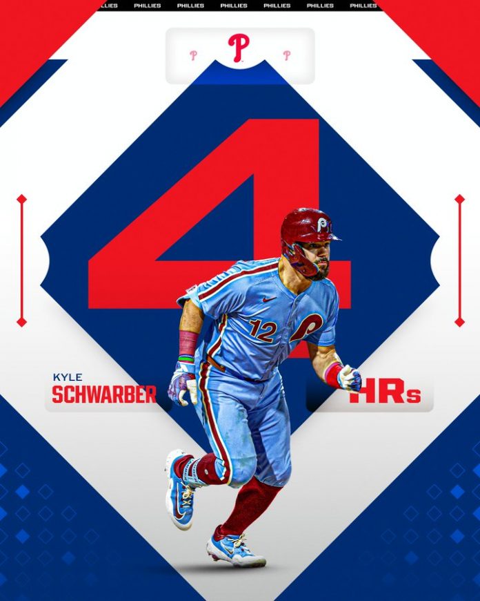 Los Phillies perdían 3 a 0 en la parte del primer episodio, pero le dieron la vuelta rápido con cinco anotaciones encabezados por el primer jonrón de Schwarber en el juego, el segundo cuadrangular no se hizo esperar mucho ya que en la parte baja del tercero y con uno a bordo la saco del parque, el tercero llego en la quinta entrada y el cuarto en la séptima, lo que daba a pensar que podía despachar cinco jonrones.