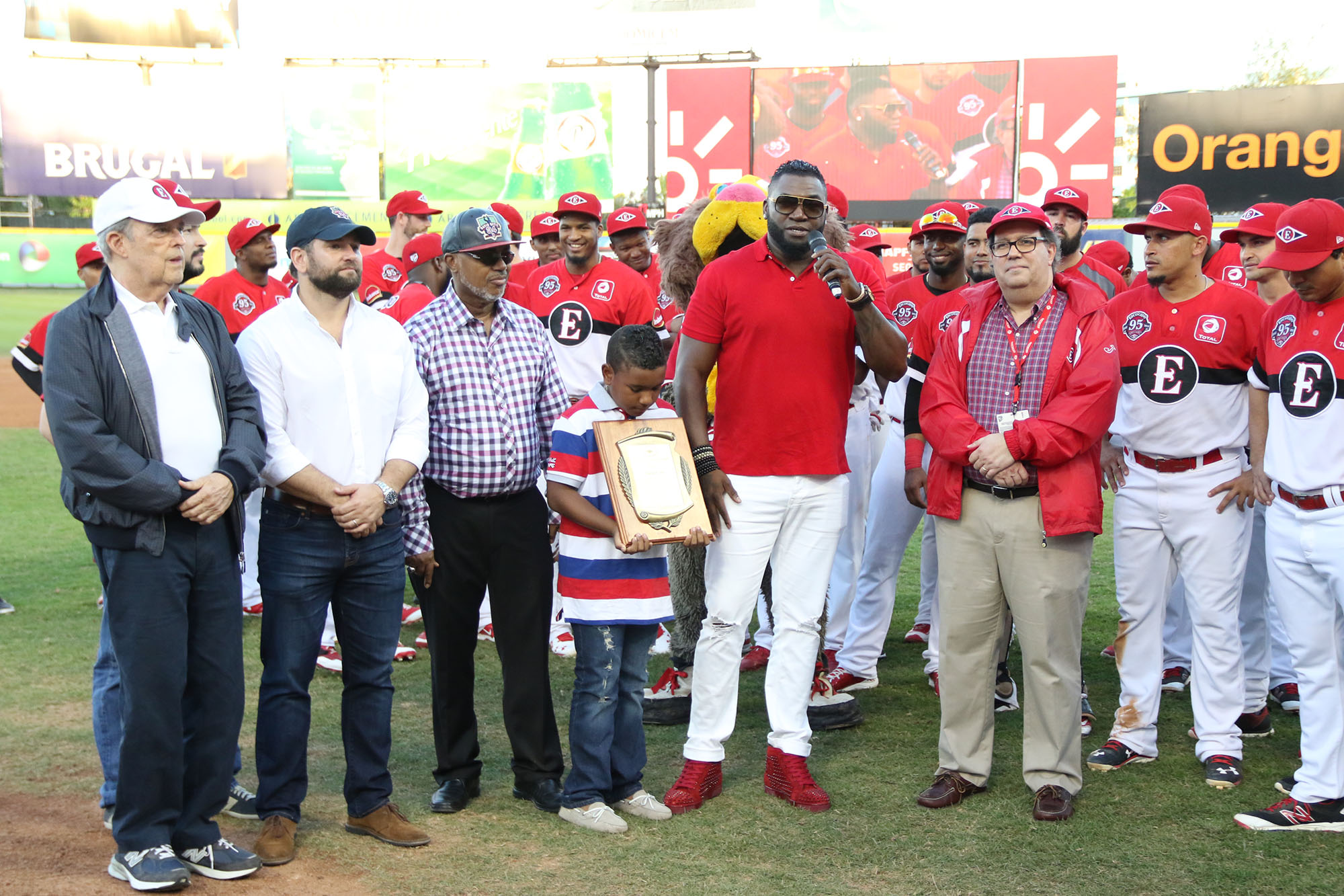 SANTO DOMINGO – El retirado astro de Grandes Ligas, David Ortiz, recibió un merecido homenaje por parte de la directiva de los Leones del Escogido, durante la celebración del partido de este domingo disputado en el estadio Quisqueya Juan Marichal.