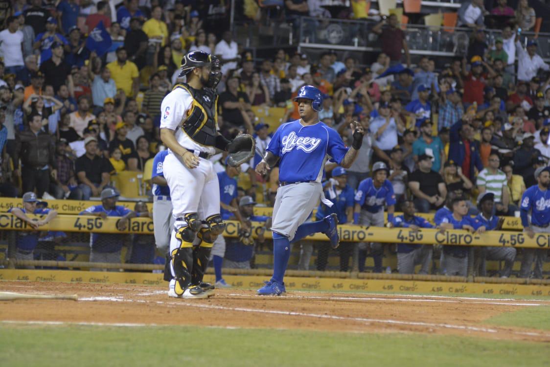 La ofensiva amarilla comenzó en el segundo por cuadrangular de Zoilo Almonte, triple de Juan Lagares y hit de Guillermo Heredia. La mejor defensa del torneo se presentó errática en el tercero y Licey aprovechó para igualar el partido en las piernas de Yermín Mercedes y Sergio Alcántara. Los Tigres se pusieron arriba en el cuarto episodio con tres carreras más y agregaron dos en el quinto, tomando el comando del partido. Las Águilas sumaron una más en el quinto y esperaron hasta el octavo para anexar otra vuelta.