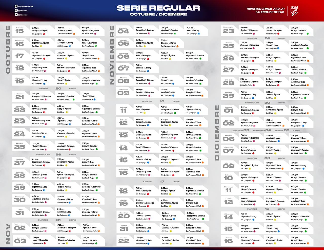 La novedad para la temporada del 2022-2023 es que tendrá menos días libres que de costumbre con un total de 10 días libres que incluye el día de acción de gracias y el fin de semana del 3,4 y 5 de Diciembre que es una fecha apartada por la federación de peloteros.