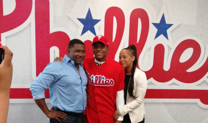 El hijo del expelotero de Grandes Ligas y Águilas Cibaeñas en la Liga Dominicana de Béisbol Profesional, logro su firma este sábado con los Filis de Filadelfia.