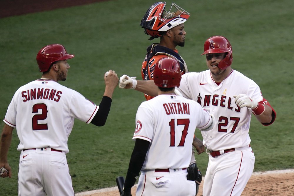 Trout se encontró en base a su compañero Andelton Simmons en la tercera entrada y conectó el batazo de 410 pies por el jardín derecho ante los envios de Brandon Bielak contra los Astros de Houston y asi convertirse en el rey de cuadrangulares de los Angelinos.