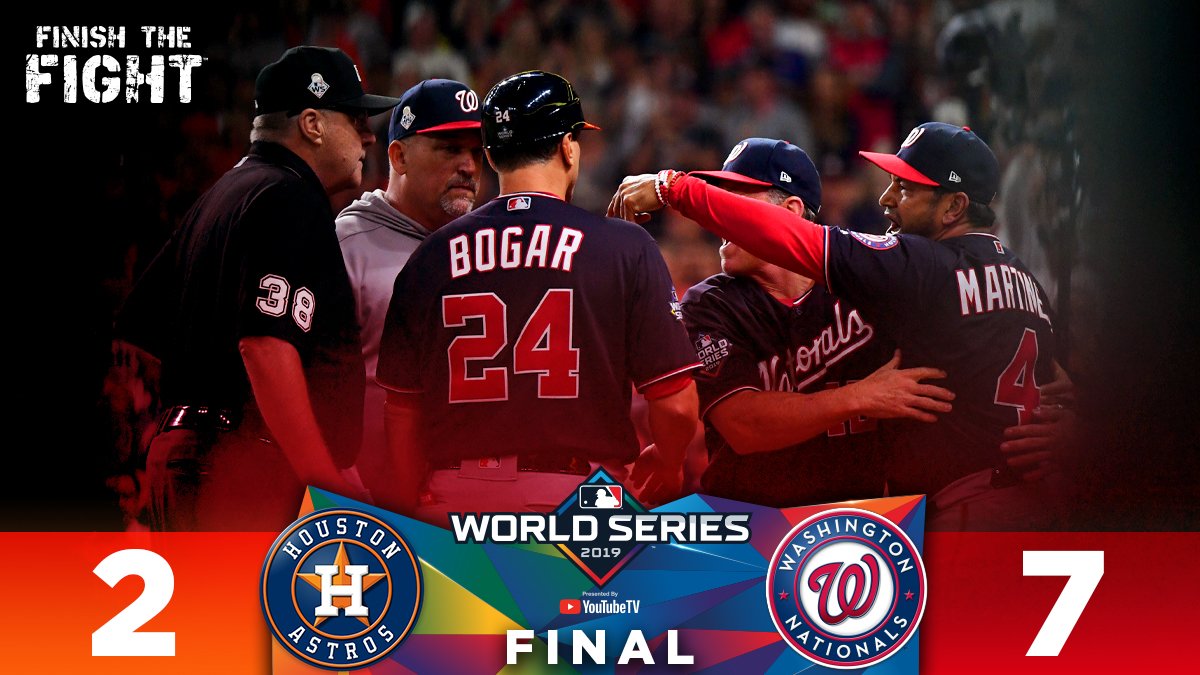 No obstante, Adam Eaton y el dominicano Juan Soto dispararon cuadrangulares solitarios para dar la ventaja a los Nacionales, que no la perdieron durante el partido. Las anotaciones se completaron con cuadrangular de dos carreras y doble impulsador de dos por parte de Anthony Rendón para convertirse en el héroe del partido.