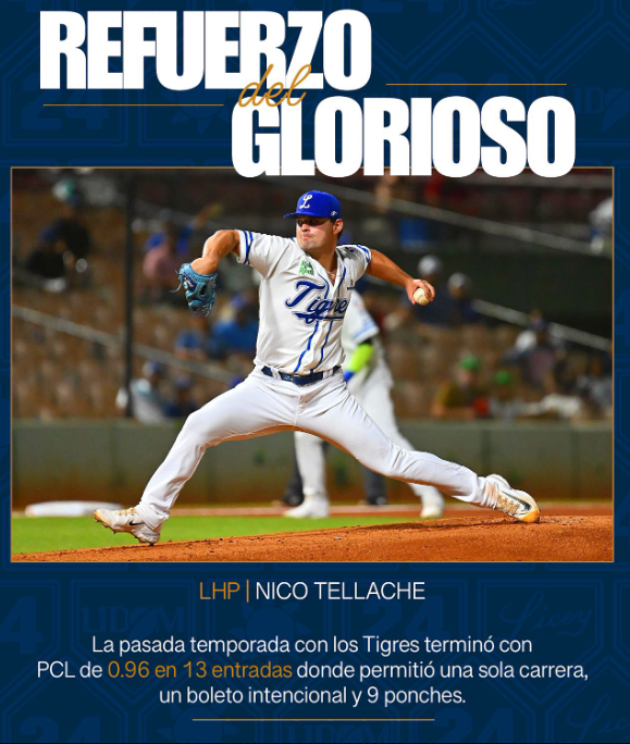 Redacción. Los Tigres del Licey han anunciado a su segundo refuerzo para la campaña que inicia el próximo mes de Octubre, se trata de un conocido ya que vera acción por segundo año consecutivo con los azules y dejo una grata impresión. Es el zurdo Nico Tellache, el lanzador puede aportar tanto como abridor como un relevista largo.