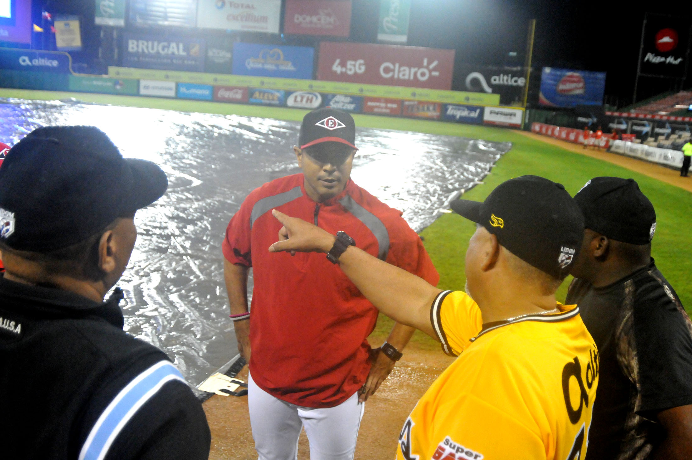 Para posponer este encuentro, tanto el dirigente de los Leones del Escogido, Luis Rojas, como el de las Águilas Cibaeñas, Lino Rivera, se reunieron en varias ocasiones con los árbitros del enfrentamiento con el encargado del Estadio Quisqueya para revisar el terreno.