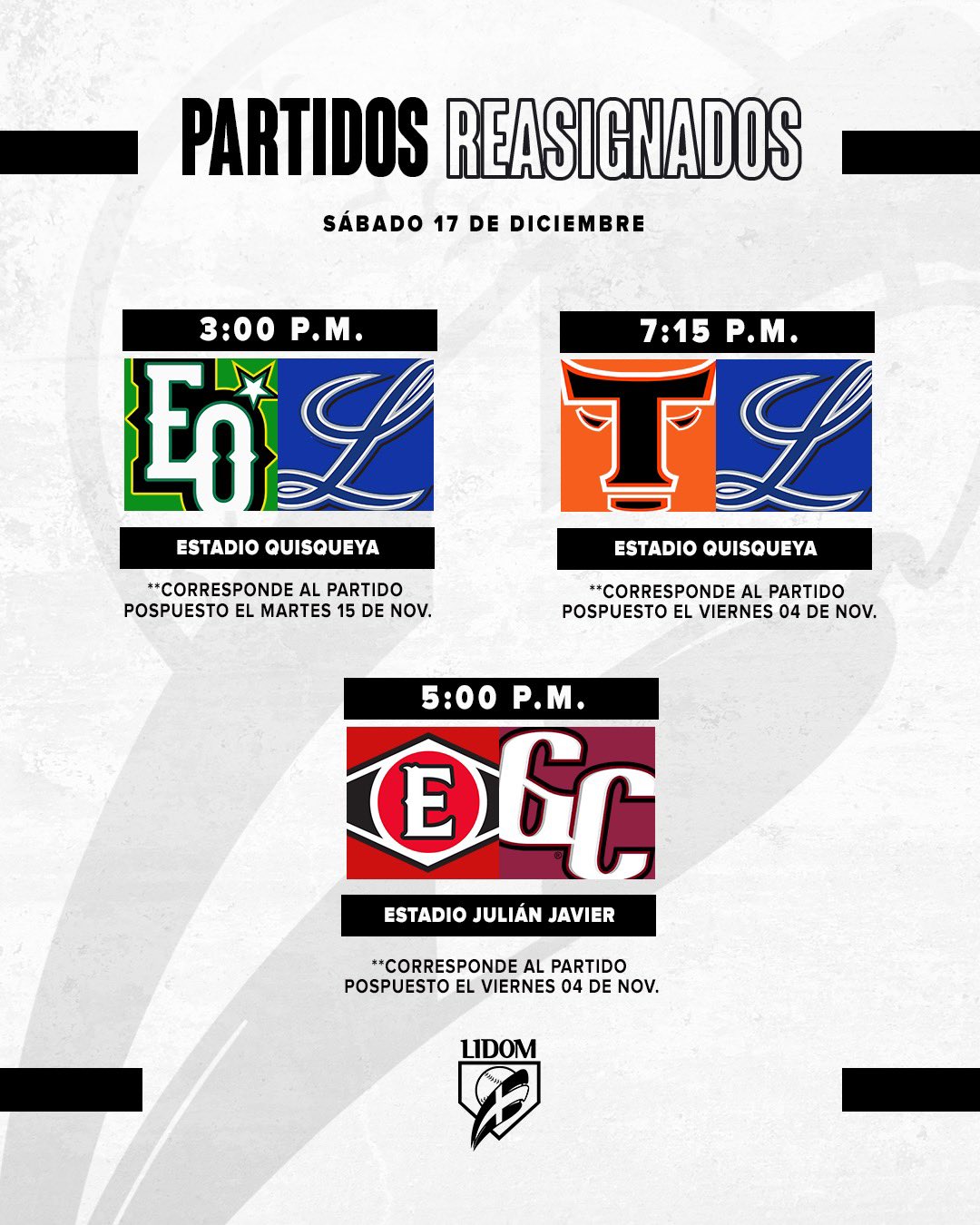La liga había colocado dos partidos para la fecha inicial con los Toros del Este visitando a los Tigres del Licey en el Quisqueya y los Leones del Escogido visitando a los Gigantes del Cibao en el Julián Javier, ahora fue colocado otro partido en el Quisqueya y será entre Estrellas Orientales y Tigres para un doble cartelera que tendrá entonces que disputar el equipo azul.